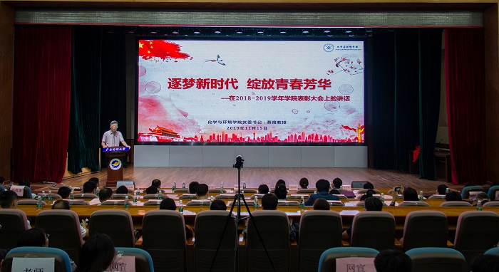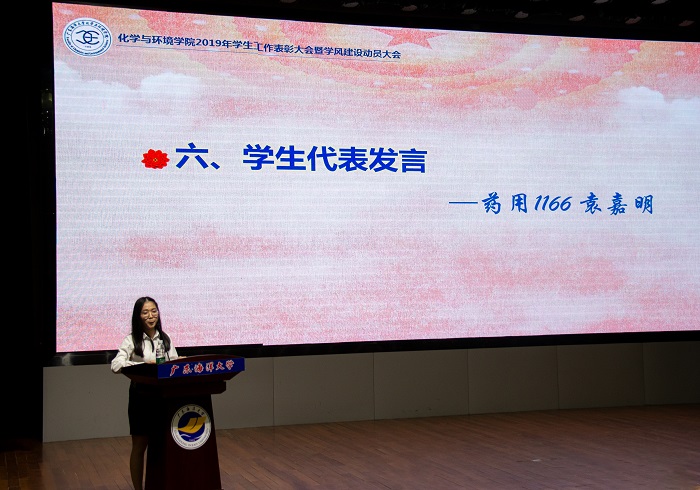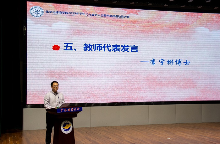 蔡鹰作最后总结讲话。他强调,此次表彰大会是进一步贯彻落实“不忘初心,牢记使命”主题教育,加强我院学风建设的重要活动。我们要进一步加强思想引领在人才培养的重要作用,要认真贯彻落实习近平总书记系列讲话精神,立德树人,教育和引导新时代大学生“不忘初心、牢记使命”。希望学院的学风建设能越来越好,同学们能逐梦新时代,绽放青春芳华,期待明年的表彰大会上涌现出更多的优秀化环学子!