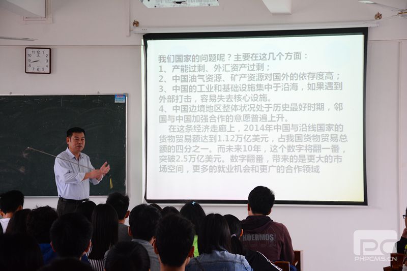 此次思想政治理论课氛围两个阶段进行授课:第一阶段,杨磊院长以《一带一路 机会与梦想》的主题进行了授课。杨院长从“一带一路”概念的提出,结合当前我国的基本情况,从其个人的成长经历到国家的进步,号召大家以国家的战略发展与个人的专业特点相结合,在不断奋斗中个人的梦想,为中国梦的实现创造条件。杨磊院长的精彩授课多次被学生热烈的掌声所打断。第二个阶段,张懿书记以《中国梦》为主题进行了理论授课。张书记从“中国梦”的提出,“中国梦”的时代变迁、“中国梦”的内涵、历史进程、与“美国梦”的区别及实现“中国梦”存在的矛盾和问题,进行了全面、详尽的讲解,为广大学生进行了系统而深入的理论辅导,其精彩授课赢得了学生的一致好评。