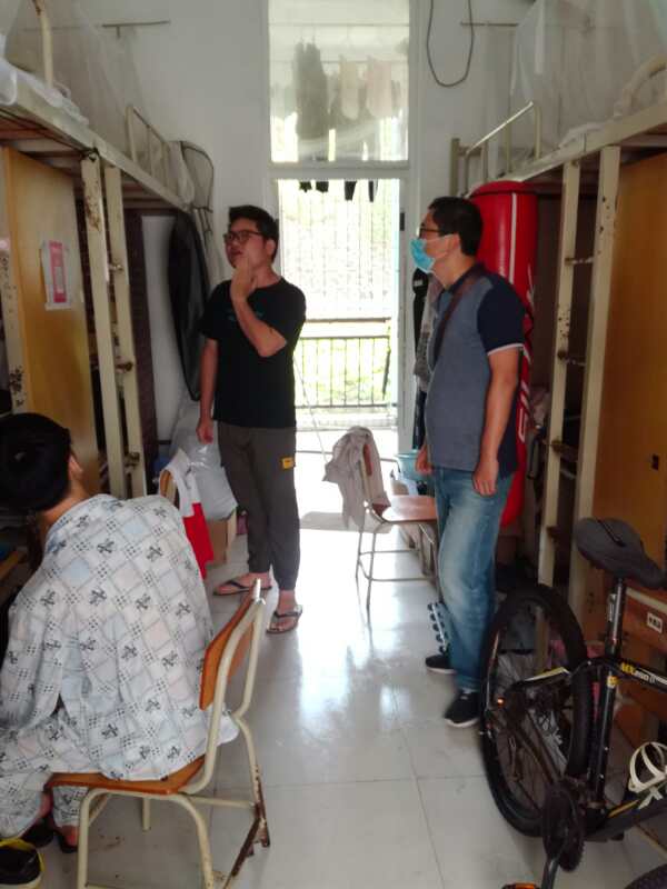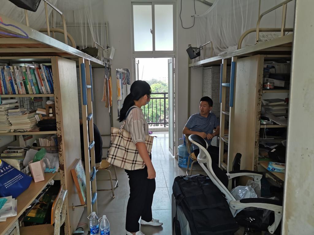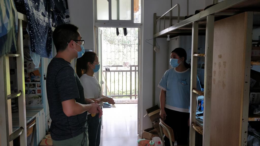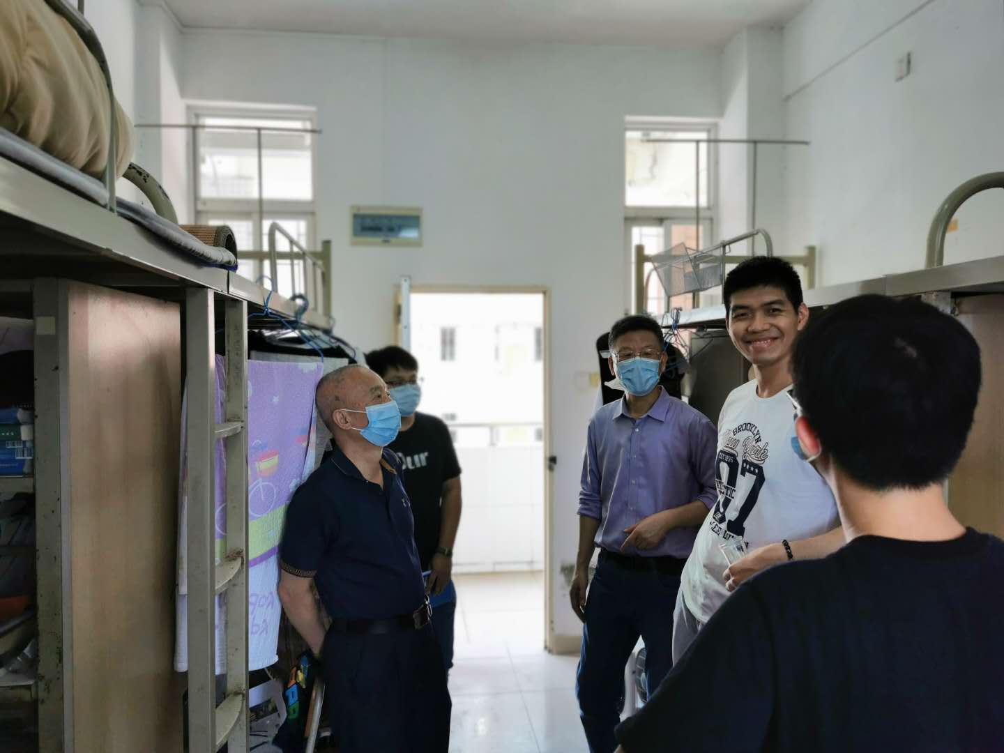 5月18-19日,我院党委书记蔡鹰、院长杨磊、副书记柯伟、辅导员和班主任老师深入学生宿舍看望我院2016级返校学生,对学生的身体状况和回校情况表示了亲切的慰问,关心学生复习备考状态。大家重点就学生的就业动态和面临困难进行了深入交流。蔡书记和杨院长特别强调,在当前疫情防控形势下,要端正就业态度,关注家庭经济困难学生的就业。