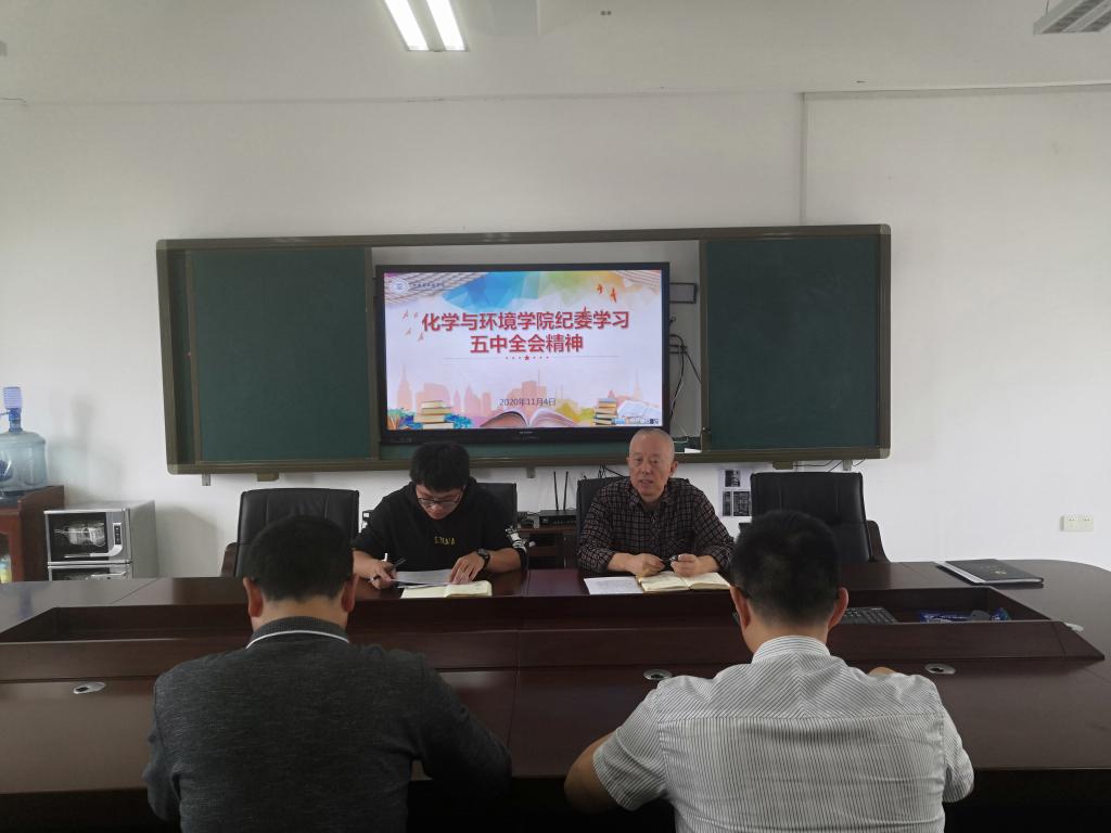 11月4日中午,化学环境学院纪委在学院会议室302,召开学习五中全会精神会议。会议由学院纪委书记柯伟主持。