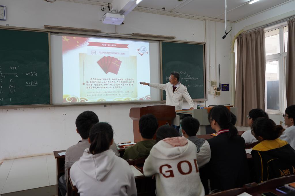 蔡鹰以“求知路上方向明”为题,从中国共产党党员入党誓词的演变为起点,详细讲述了建党100周年中各个时期入党誓词的变化与意义。他强调,入党誓词的历史沿革反映着我们党坚持以人民为中心、坚持与时俱进、从不放松党的建设。入党誓词是党员对党和人民做出的庄严承诺,对于党员来说,是身份的转变、责任的承担,也是忠诚的体现,对于我们当代大学生坚定理想信念具有重大的教育意义和价值,希望同学们认真学习革命先辈入党时的初心,牢记使命,做到心中有党,把稳思想之舵。