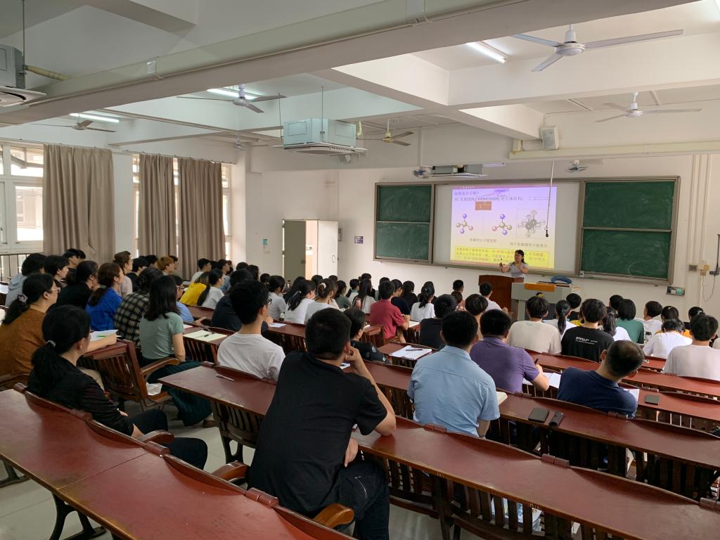 第一场公开课由获得2020年度省级课程思政示范课程的负责人陈洪老师主讲,讲授课程为《有机化学》。陈洪老师以多种授课方式讲授了有机化学中的旋光异构现象,并引入了自然界中的旋光异构现象进行解释。此外,陈洪老师还插入了课程思政的元素,取得了良好的教学成果。