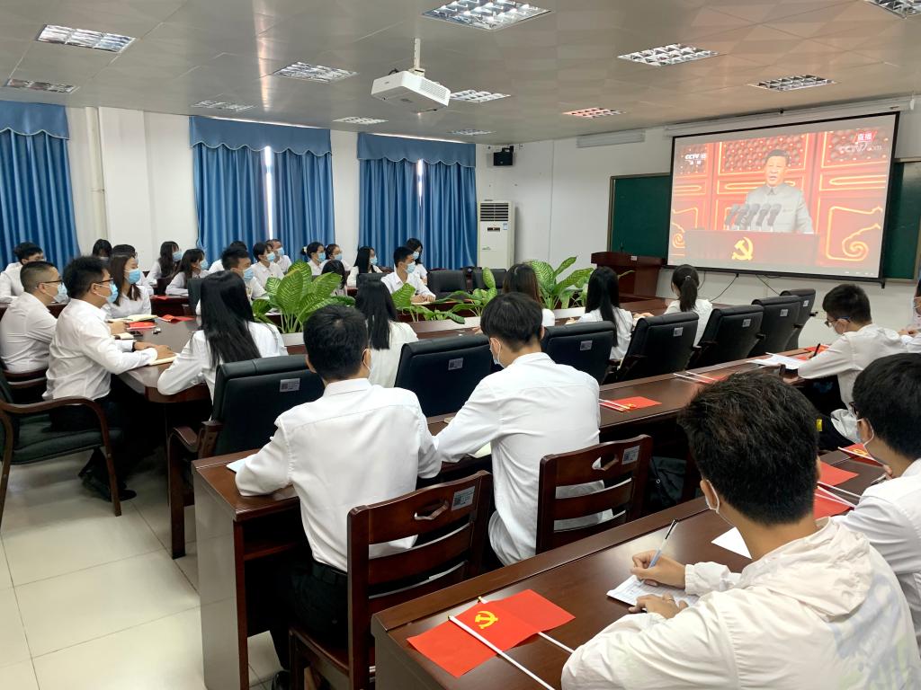 7月1日,77779193永利集团资源与环境系学生党支部全体党员,在第三实验楼B304收看了“庆祝中国共产党成立100周年大会”直播,并组织了座谈会。