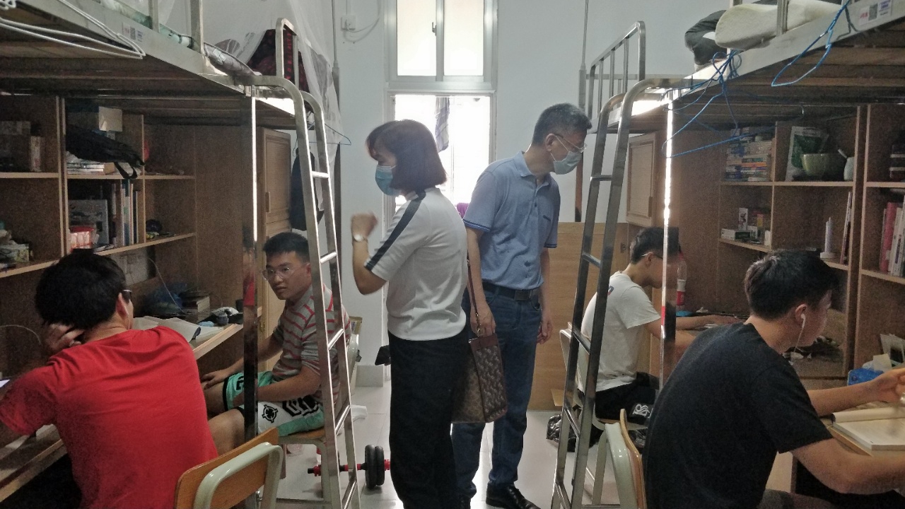 9月6日上午,学院党委书记蔡鹰、副院长孔松芝及相关辅导员到第十五期学生公寓,走访我院新搬迁学生宿舍,了解学生开学第一天的线上教学学习情况。