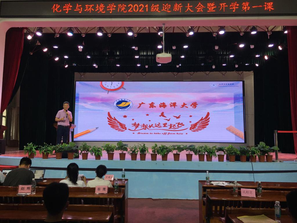 在学院迎新大会上,赵辉对2021级新生的到来表示热烈的祝贺,并介绍了学院的发展情况,勉励新生进入大学要明确目标、独立思考、求真求实,更快的适应大学生活。孔松芝副院长在会上宣读了2021级新生班主任的任职决定以及辅导员分工情况。随后,在校生代表2018级制药工程专业梁攸灵同学从学习、生活等方面分享了自己大学三年的具体规划,为新生开展学业规划提供借鉴;刘琪琦作为2021级新生代表发言,并表态要充分利用海大的所提供的资源和平台,努力学习专业知识,成为社会需要的人才。最后,蔡鹰作了总结发言,他对461名到校新生表示热烈欢迎,希望大家作为海大新的一分子、化环学院的新成员,尽快融入大学生活,学业有成,健康成长。