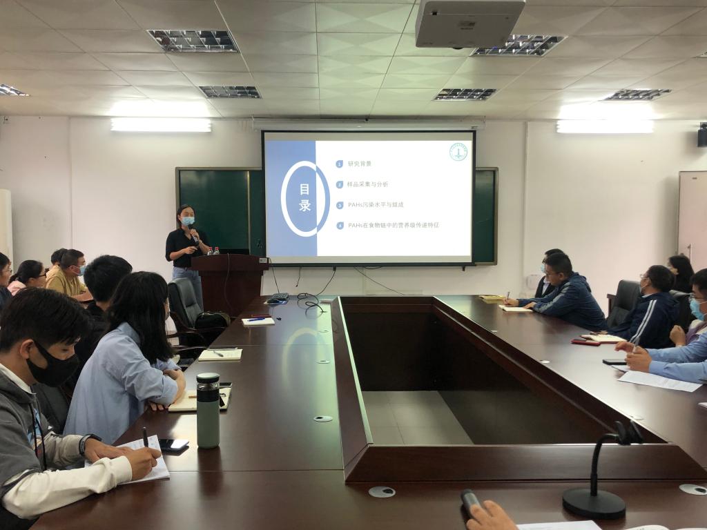 杨颖作题为“南海珊瑚礁生态系统中多环芳烃的污染现状及营养级传递行为研究”的学术报告