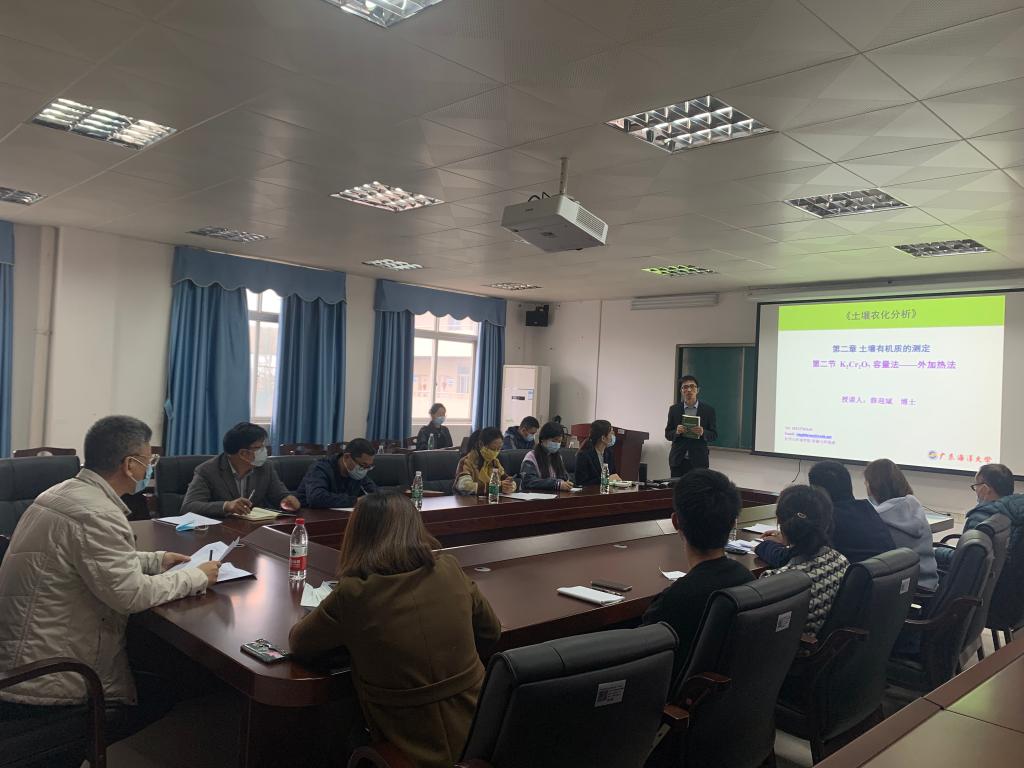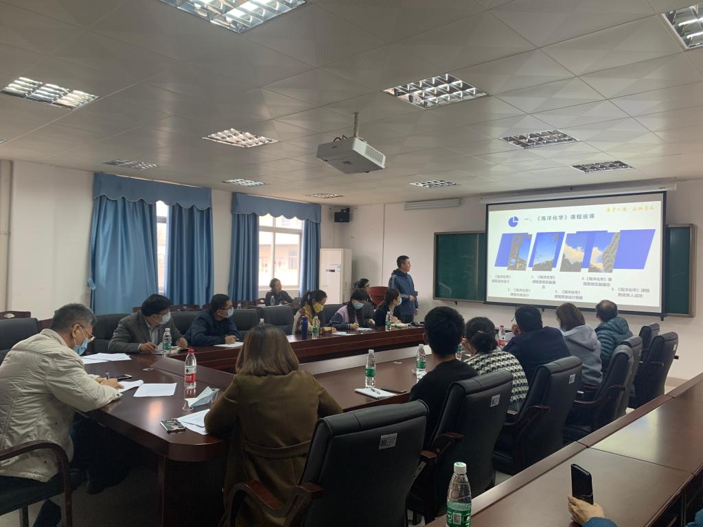 在授课环节,薛迎斌、王頔和张鹏老师分别以《土壤农化分析》—“土壤有机质的测定重铬酸钾容量法”、《化工原理》—“伯努利方程式”、《海洋化学》—“海洋中的营养盐概述”为题,进行了教学大纲展示、说课以及授课演示。三位老师积极运用学习通、慕课等现代教学方法,开展了各有特点的授课活动,均能自然引入思政元素,展现了优良的教学风采。评委们认真观摩三位参赛教师的教学设计、说课及授课效果,积极进行综合评价,并提出中肯建议。评委根据授课表现及答辩情况,推荐张鹏、王頔老师参加学校授课观摩竞赛。蔡鹰对竞赛进行了总结,指出教学是高等教育的核心工作,并勉励年轻教师积极投身教学研究,做到政治合格,业务精湛。