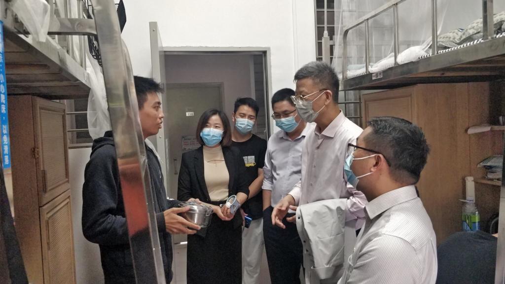 蔡鹰一行走访了海园大院学生宿舍。走访期间,蔡鹰感谢各位同学在疫情期间对学校、学院各项工作的支持与配合,要求同学们严格遵守学校疫情防控相关规定,做好晨午晚检健康情况监测。赵辉叮嘱同学们如果生活上遇到困难要及时与辅导员联系,学习上要多与专业教师沟通交流,提高学习的主动性。庞国明鼓励同学们要养成良好的生活习惯,严格按照教学安排认真进行线上学习。孔松芝提醒同学们要保持良好的寝室卫生,树立寝室安全意识,加强体育锻炼。