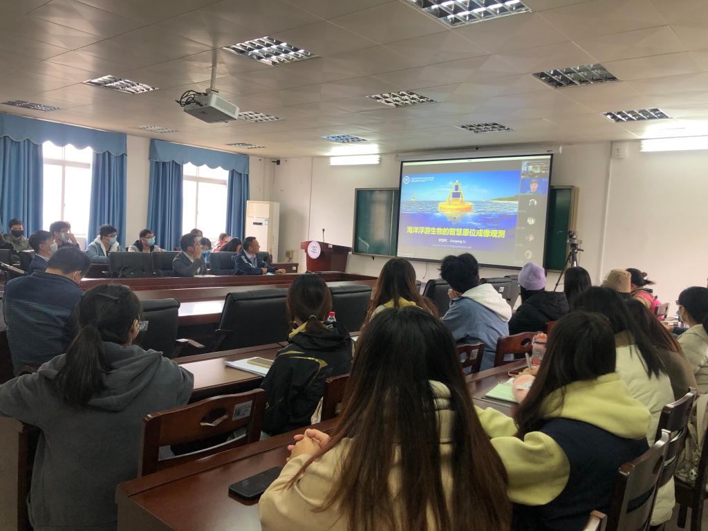 报告首先介绍了基于暗场成像的海洋浮游生物原位观测原理、技术实现及样机实海应用,分享了全新观测设备从概念设想、技术达成及推广应用的艰难历程,勉励我院师生对科研工作保持耐心终能实现既定目标;接着展示了基于最新算法的图像识别、锐化及目标物的分类识别,阐述了对海洋浮游生物的实时计数和种类鉴定具有重要现实意义;最后总结了基于暗场智慧原位成像技术在海洋系统研究的应用前景,并对基于实海智慧原位成像观测的其他非生物类颗粒物质在表观形态、物质组成识别及碳汇监测评估等方面的可能应用进行了展望。