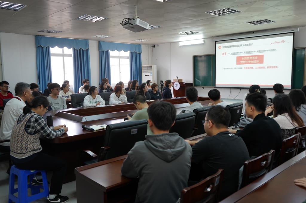 蔡鹰以《加快建设教育强国,把坚持为党育人、为国育才落到实处》为题,从“加快建设教育强国的重大战略意义”、“加快建设教育强国的总体方向和重点任务”、“立志成为堪当民族复兴大任的时代新人”三个方面,带领大家深入学习党的二十大擘画的宏伟蓝图、深刻感悟二十大精神。