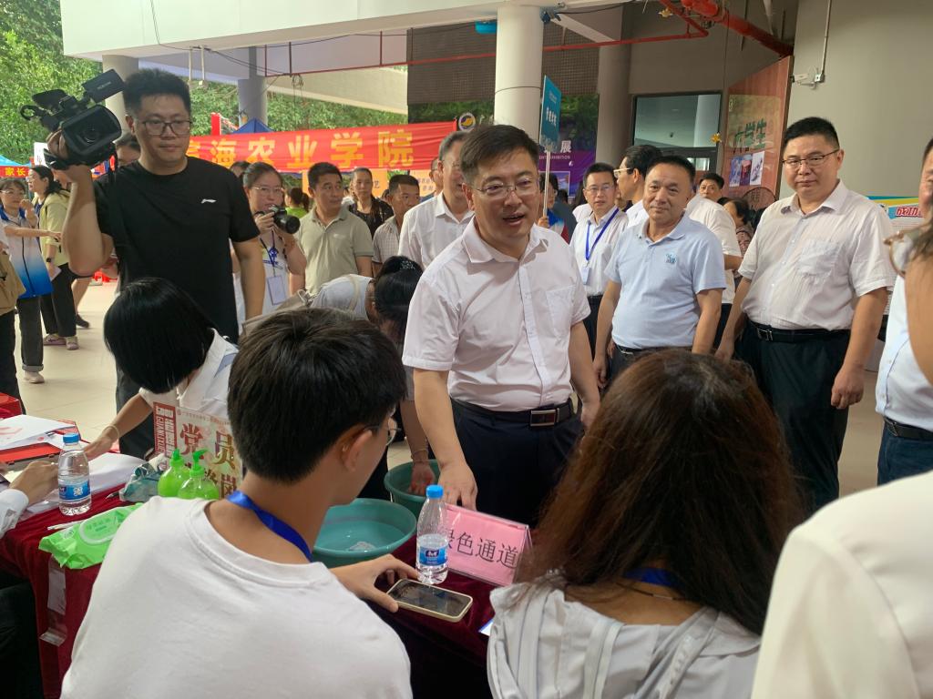 学院书记蔡鹰、院长赵辉带领学院领导与各系负责人也亲临现场对迎新工作进行悉心指导,并先后到海园、海湛新生宿舍进行了走访慰问,为新同学送上学院的关怀,鼓励大家尽快适应大学生活,确保健康顺利地进入大学的学习生活。
