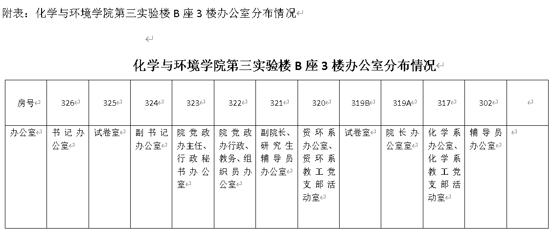 根据学校关于有关学院办公室搬迁的工作要求和安排,学院行政办公室(包括院系领导、学院党政办、辅导员办公室)已于2020年1月14日搬迁到湖光校区第三实验楼B座3楼,具体办公室分布情况请见附表,如有调整,学院会另行通知。从即日开始,学院行政办公改在新地点,请各部门负责人通知到所属教职工,辅导员、班主任通知到有关班级学生。